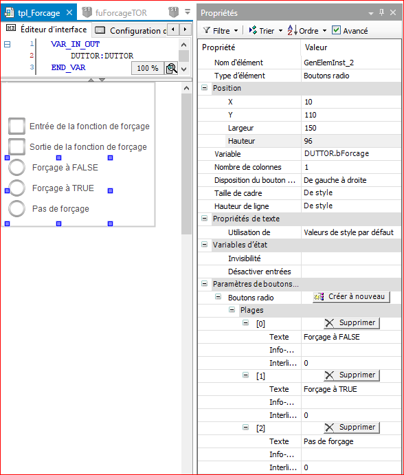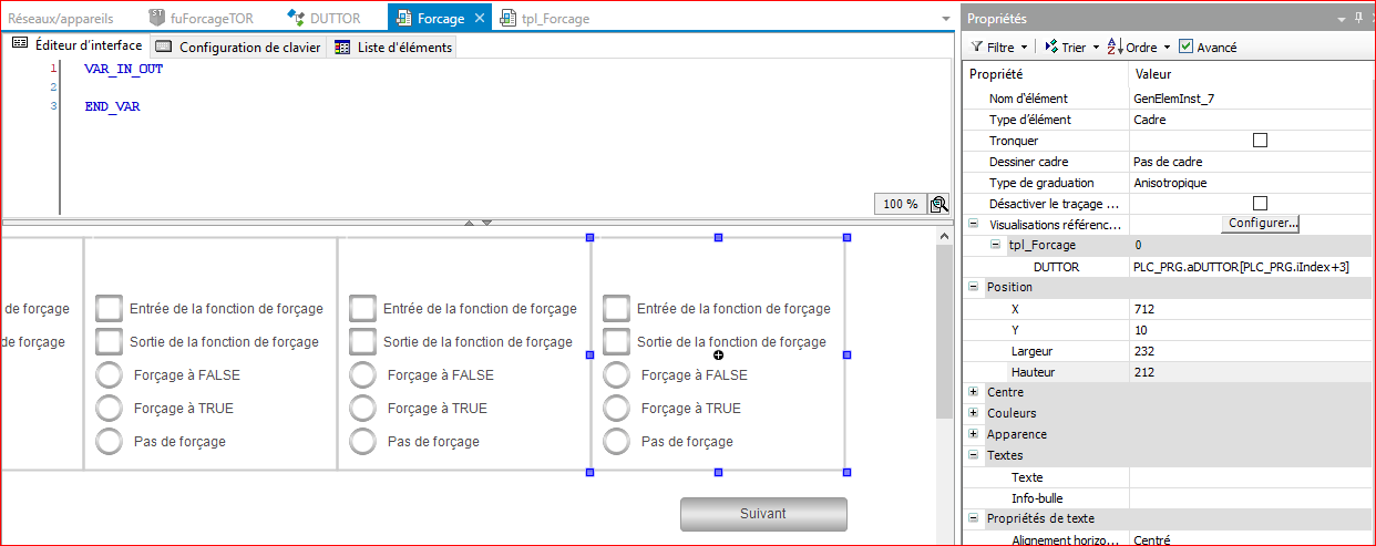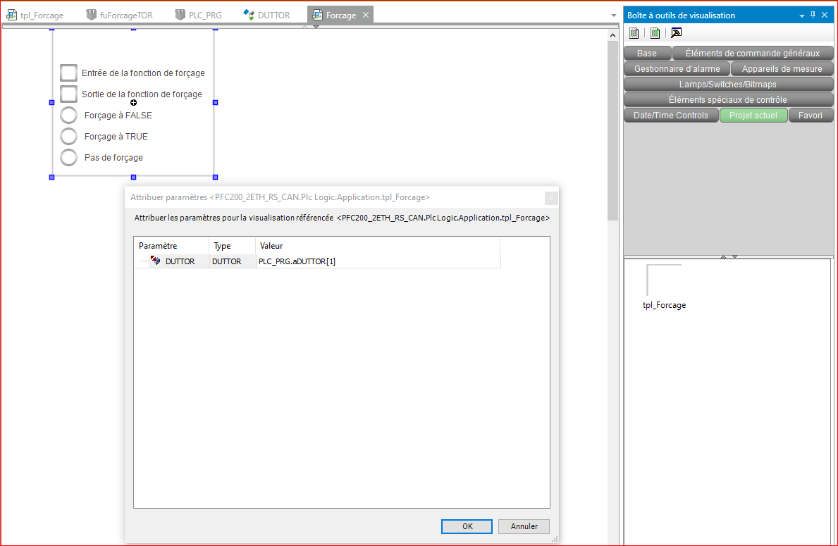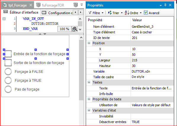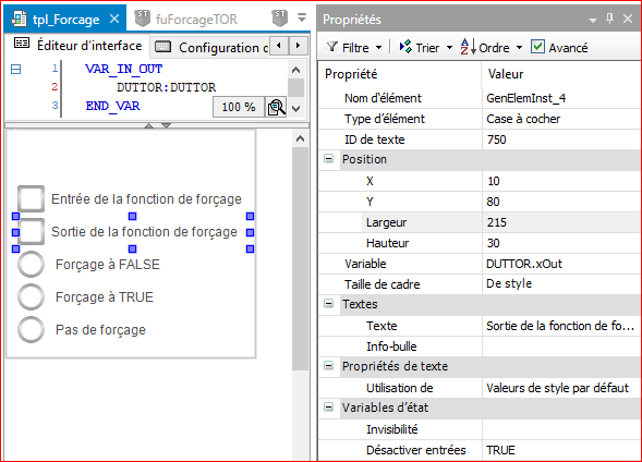 Pourquoi ces modification sont elles intéressantes ? Comme nous allons renseigner les variables de forçage depuis une visualisation, nous allons pouvoir, avec cette modification, créer une visualisation générique pour une structure et nous pourrons ensuite utiliser cette visualisation générique pour tous nos éléments.