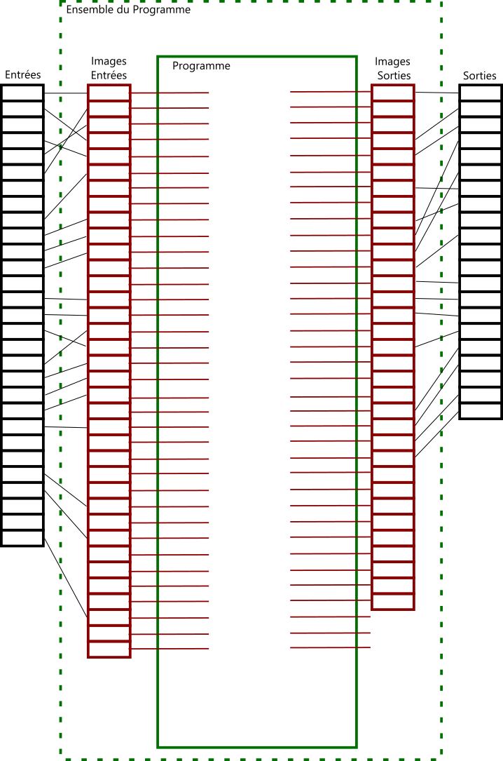 Nous pourrions aussi déplacer le tableau de structure dans une liste de variables globales et déplacer la zone d'affectation des .xIN dans un programme spécifique. Ce programme serait la zone d'échange entre les entrées / sorties et les tables images.
