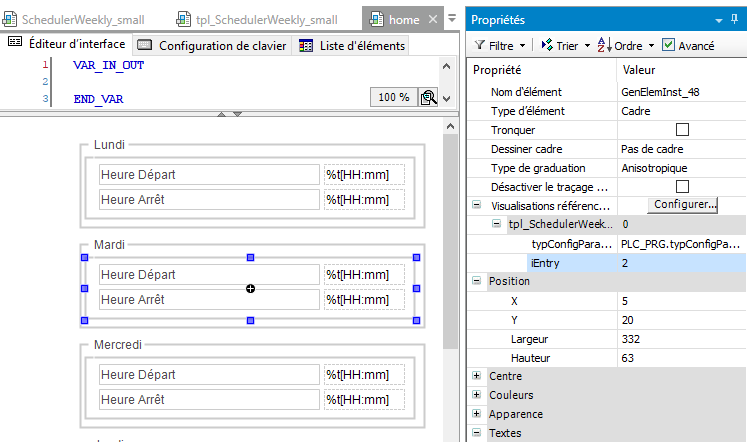 La variable iEntry correspond à l'index dans le tableau de aScheduleWeekly de notre variable typConfigParameters.