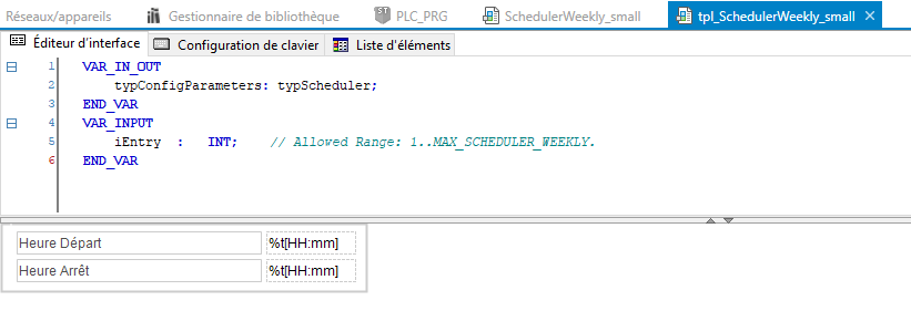 Nous allons ensuite insérer un bloc fonctionnel "FbScheduler" afin de gérer nos plages horaires